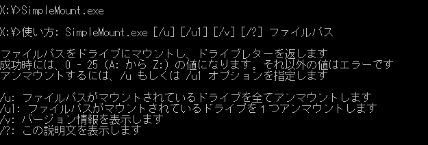 同様に、コマンドラインから、SimpleMount.exe を実行すると